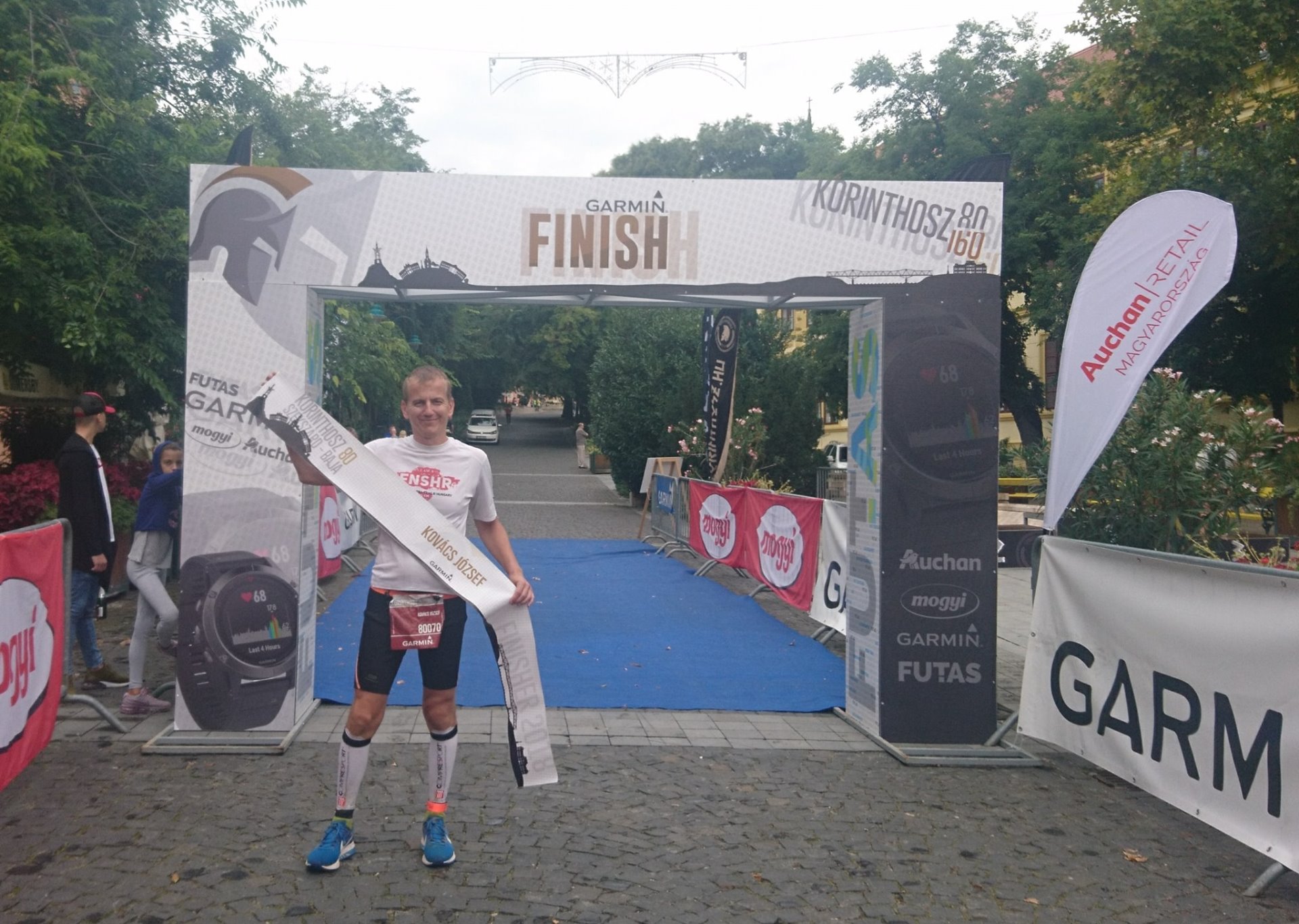 Túljutok rajta, jöhet a lejtő. Polgárőrös arcok mutatják végig az irányt, és már ők is bíztatnak, gratulálnak. Már tudok mosolyogni, integetek, megköszönöm az energiát, amit kapok. Végre beérek Szekszárdra, és még jön egy kis szlalom a házak között, majd a kezembe nyomnak egy molinó-csíkot, amely szerint a Korinthosz 80 Finisher-e vagyok, és azt magasba emelve futhatok át a célkapu alatt...